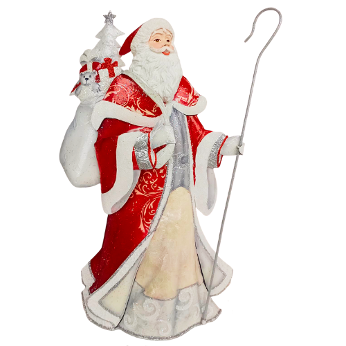 Encante sua decoração natalina com este elegante Papai Noel com Cajado e Saco de Presentes, uma peça cheia de charme e brilho que vai transformar seu ambiente em um verdadeiro cenário de Natal!