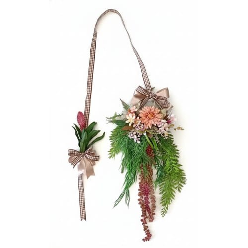 Com um visual inspirado na leveza da primavera, este enfeite combina elementos naturais e cores suaves que trazem sensação de aconchego, renovação e alegria. O formato de escapulário alongado proporciona um efeito elegante e harmonioso, ideal para destacar portas de entrada, halls, varandas, áreas internas ou até mesmo ambientes comerciais.