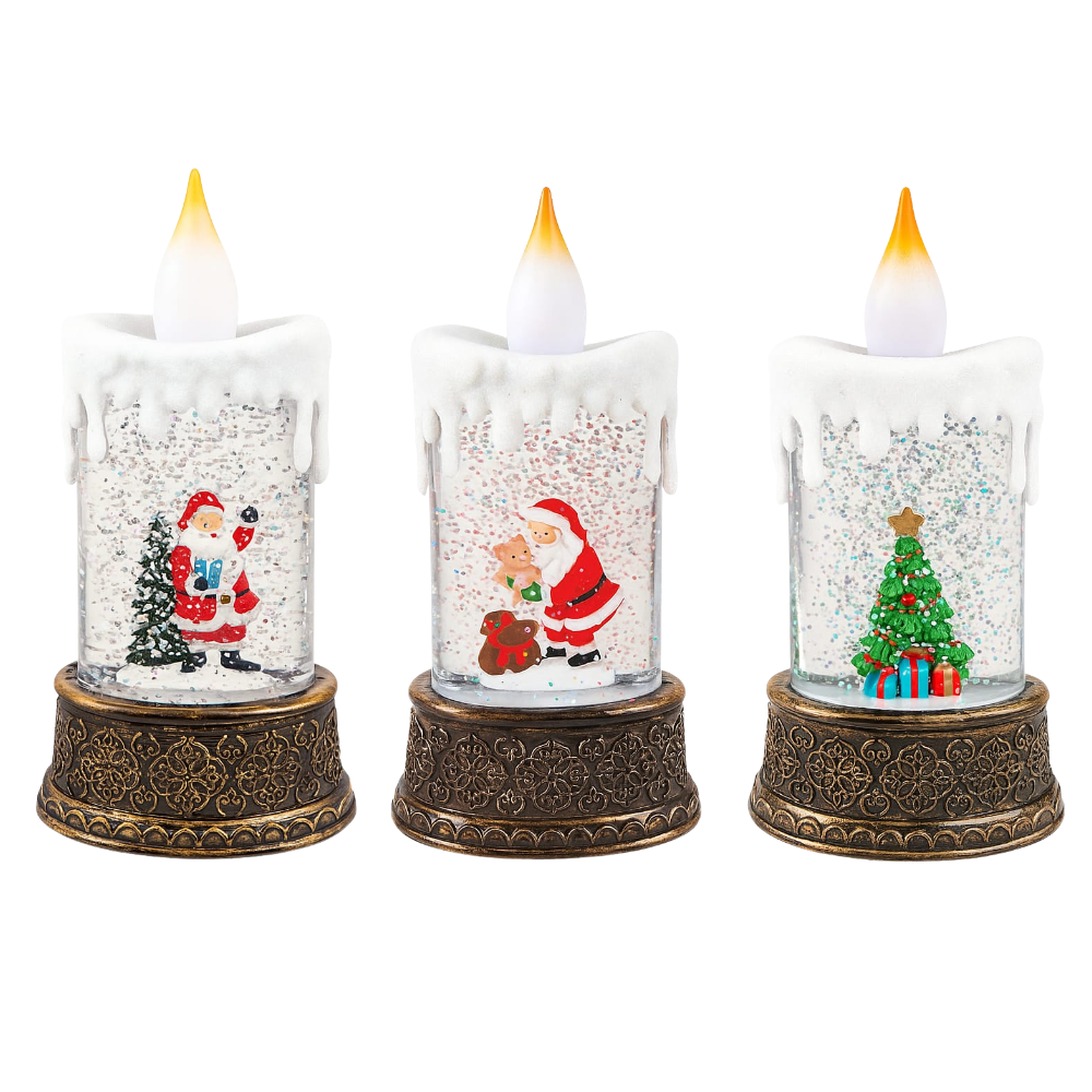 Vela Decorativa de Natal com LED e Neve Brilhante – Efeito Mágico e Timer Automático de 6h!