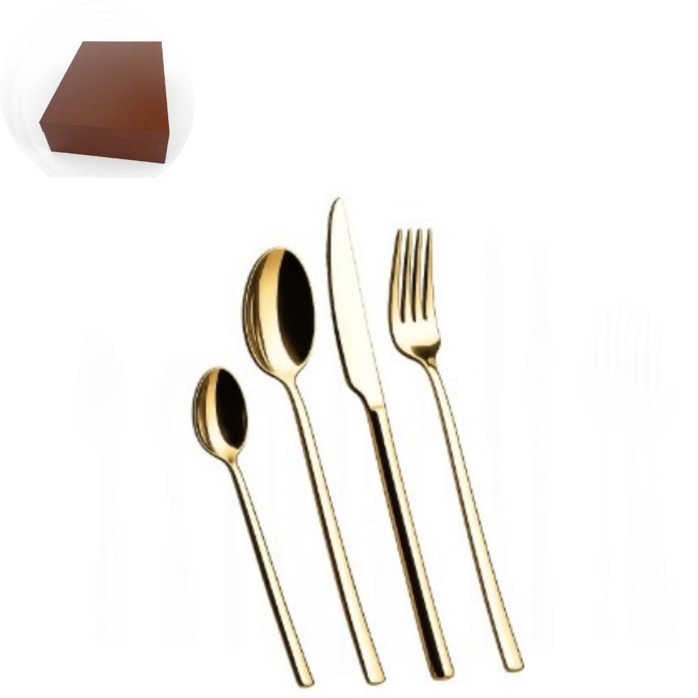 O Faqueiro 101 Peças Firenze Dourado com Estojo de Madeira é a escolha perfeita para quem deseja unir sofisticação, elegância e funcionalidade em sua mesa. Com acabamento refinado em aço inox dourado, este conjunto traz um toque luxuoso e moderno para qualquer ocasião, tornando cada refeição ainda mais especial.