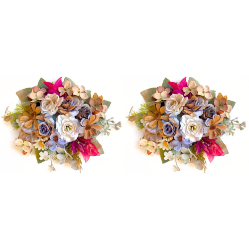 Adicione charme e sofisticação à sua decoração com este lindo conjunto de 2 bobeches artesanais. Perfeitas para castiçais, elas são confeccionados com flores e folhagens artificiais, trazendo um toque colorido e elegante ao ambiente.