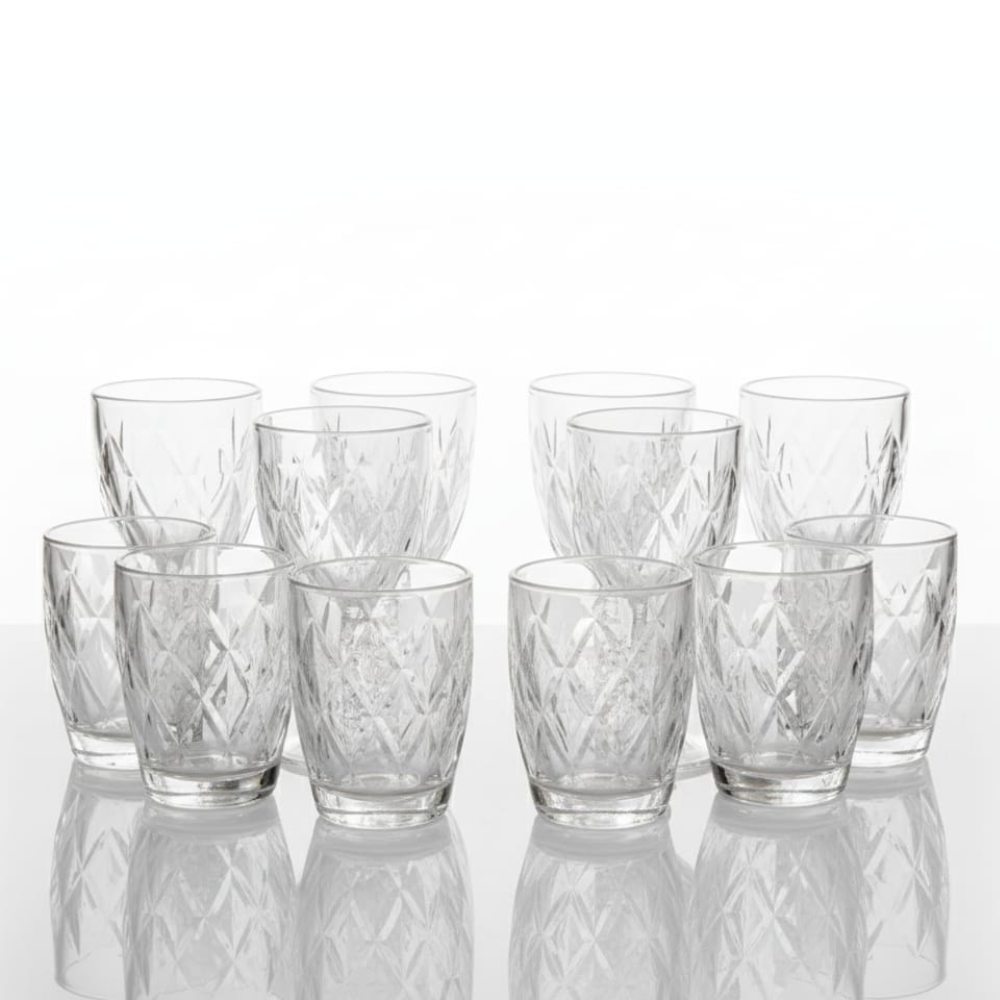 Transforme seus momentos à mesa em ocasiões especiais com este lindo conjunto de vidros. Com design clássico e sofisticado, cada peça possui acabamento lapidado estilo diamond, que reflete a luz de forma elegante, trazendo requinte e charme para qualquer ocasião – desde o dia a dia até recepções mais formais.