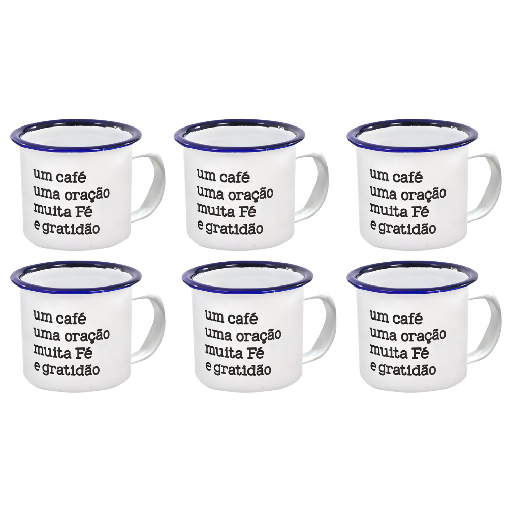 Se você busca um produto durável, versátil e cheio de boas vibrações, o Jogo com 6 Mini Canecas Retrô “Um café, uma oração, muita fé e gratidão” é a escolha perfeita para tornar seus momentos de café ainda mais especiais.
