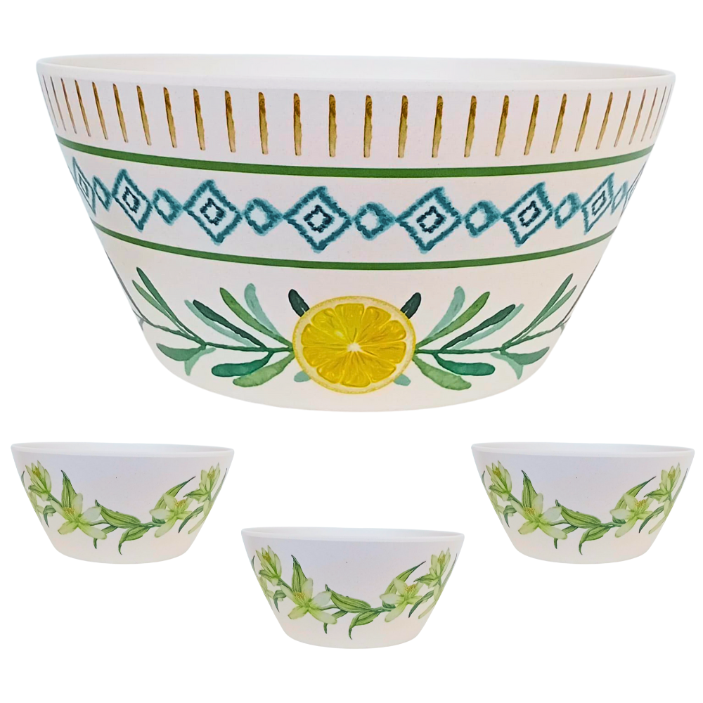 Traga mais frescor e charme para a sua mesa com este lindo jogo de saladeiras. Com estampa delicada de flores, folhas e limões sicilianos, as peças unem praticidade, estilo e versatilidade, perfeitas para servir saladas, frutas, massas e muito mais.