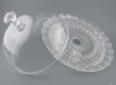 Prato para Bolo com Pé e Tampa 32cm em Vidro Trabalhado