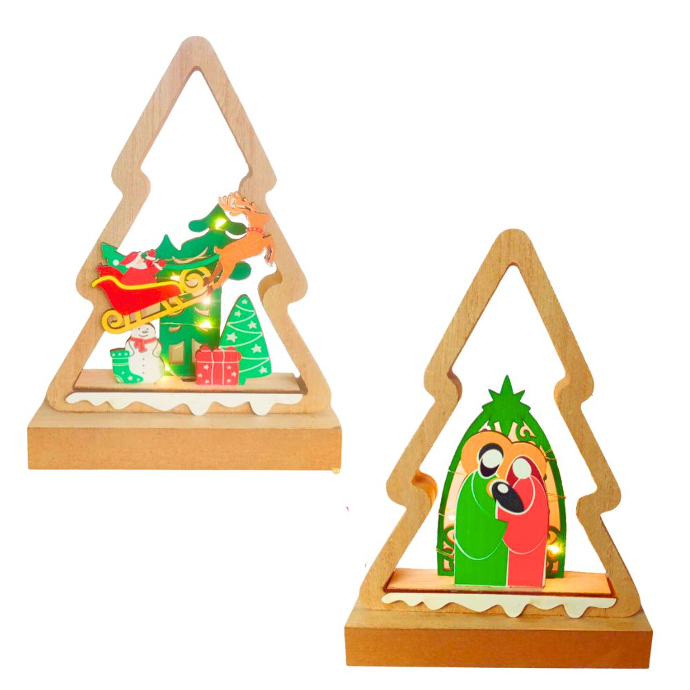 - Árvore com Papai Nolel no trenó, Boneco de Neve e árvores de Natal - 19,3x14x5cm.