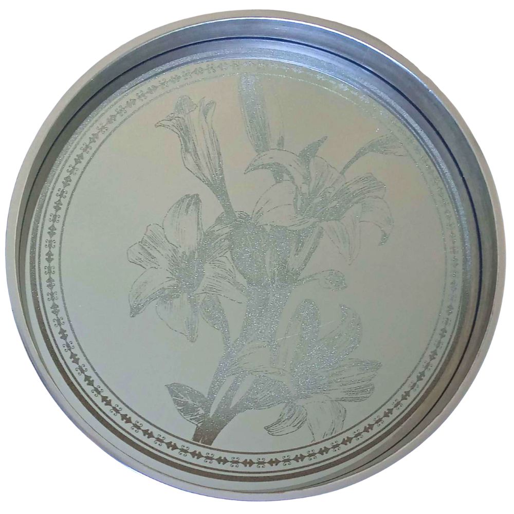Composição: Polipropileno patina prata/preto (0,7cm) e espelho com lírios em glitter champanhe.