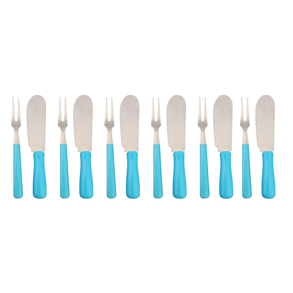 Kit Facas e Garfinhos 12 Peças Para Petiscos e Patês Aço Inox e Cabo de Plástico Azul