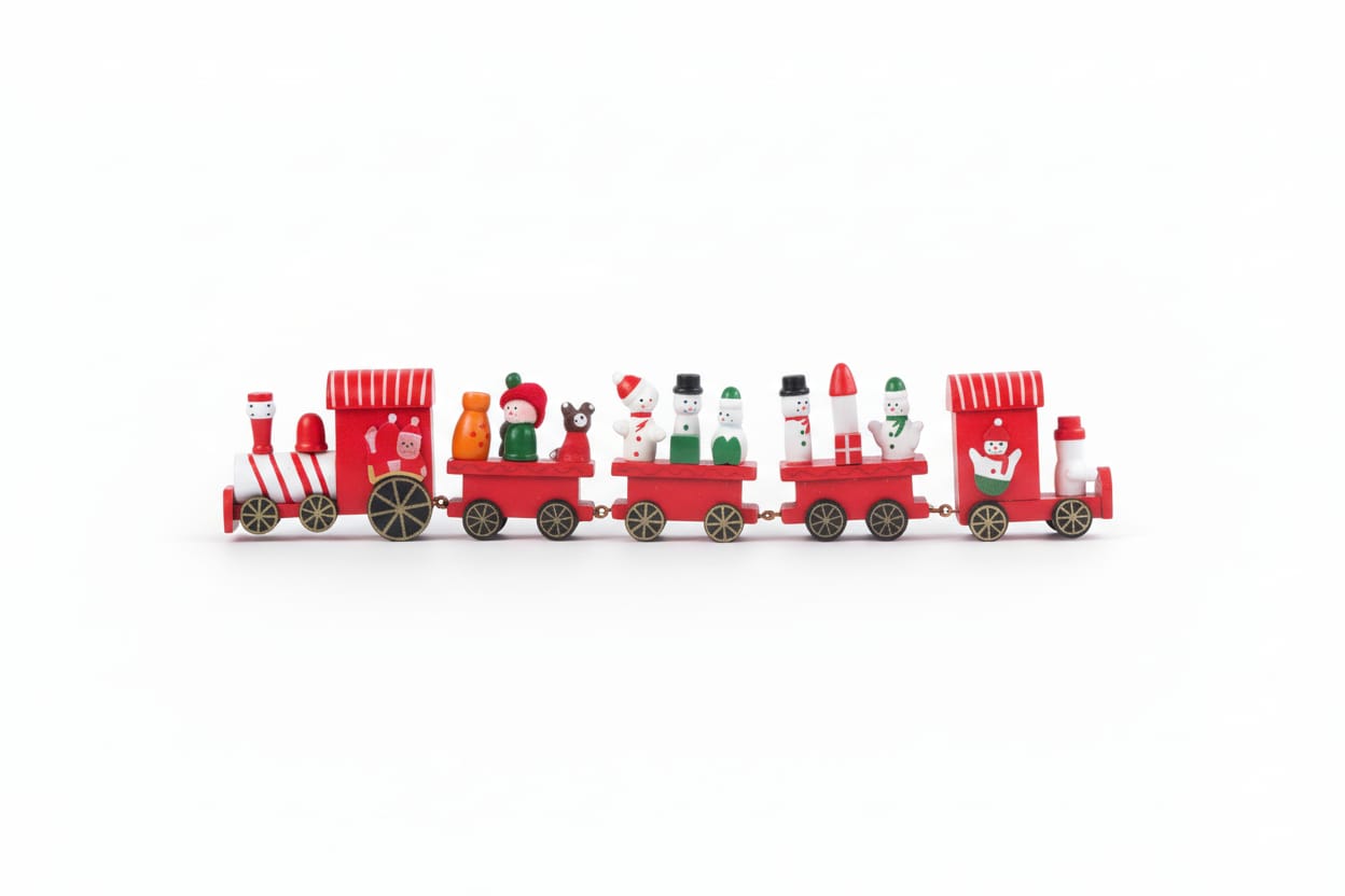 Personagens Adoráveis: Observe os passageiros especiais que compõem este trem! Bonecos de neve sorridentes, papais noéis miniaturas e outros amigos festivos enfeitam cada vagão, tornando-o ainda mais cativante. (Se quiser, posso listar os personagens específicos).