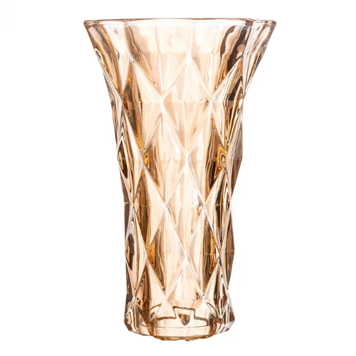 Fabricado com vidro de alta qualidade, o Vaso Diamond Âmbar Metalizado é durável e possui um acabamento refinado, garantindo sua beleza por muitos anos.